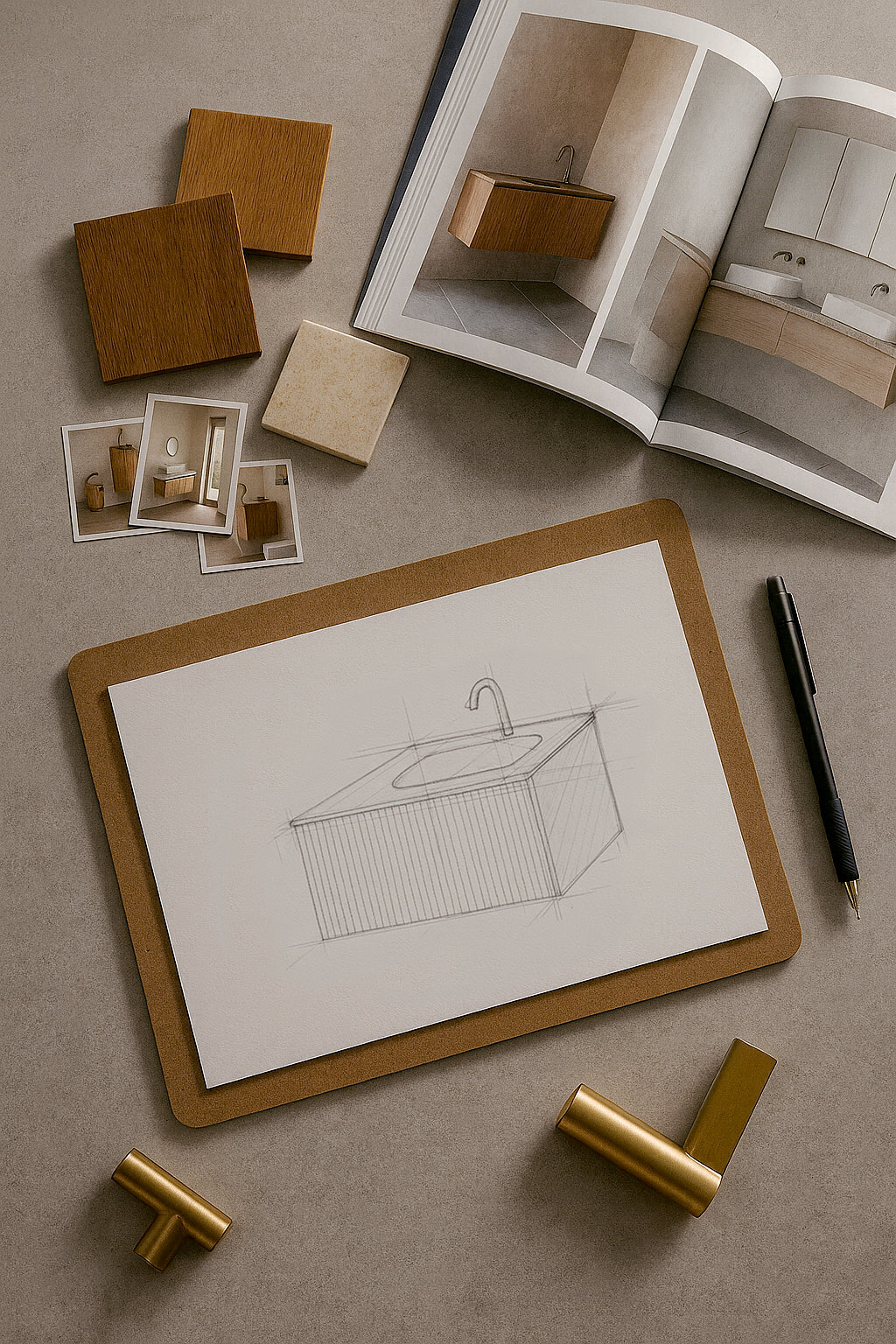 Meubles, vasques, robinetterie, parois de douche, miroirs : chaque élément est sélectionné et structuré pour fonctionner naturellement avec les autres. Nous construisons des collections complètes, où les formes, les matières et les finitions dialoguent entre elles.