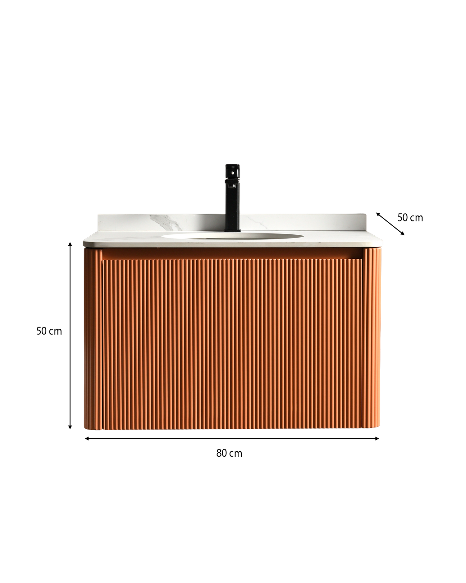 Le meuble de salle de bain Artea Terracotta associe design contemporain et fonctionnalité. Sa finition terracotta mate apporte une touche chaleureuse et moderne à la salle de bain, tout en conservant des lignes sobres et élégantes.