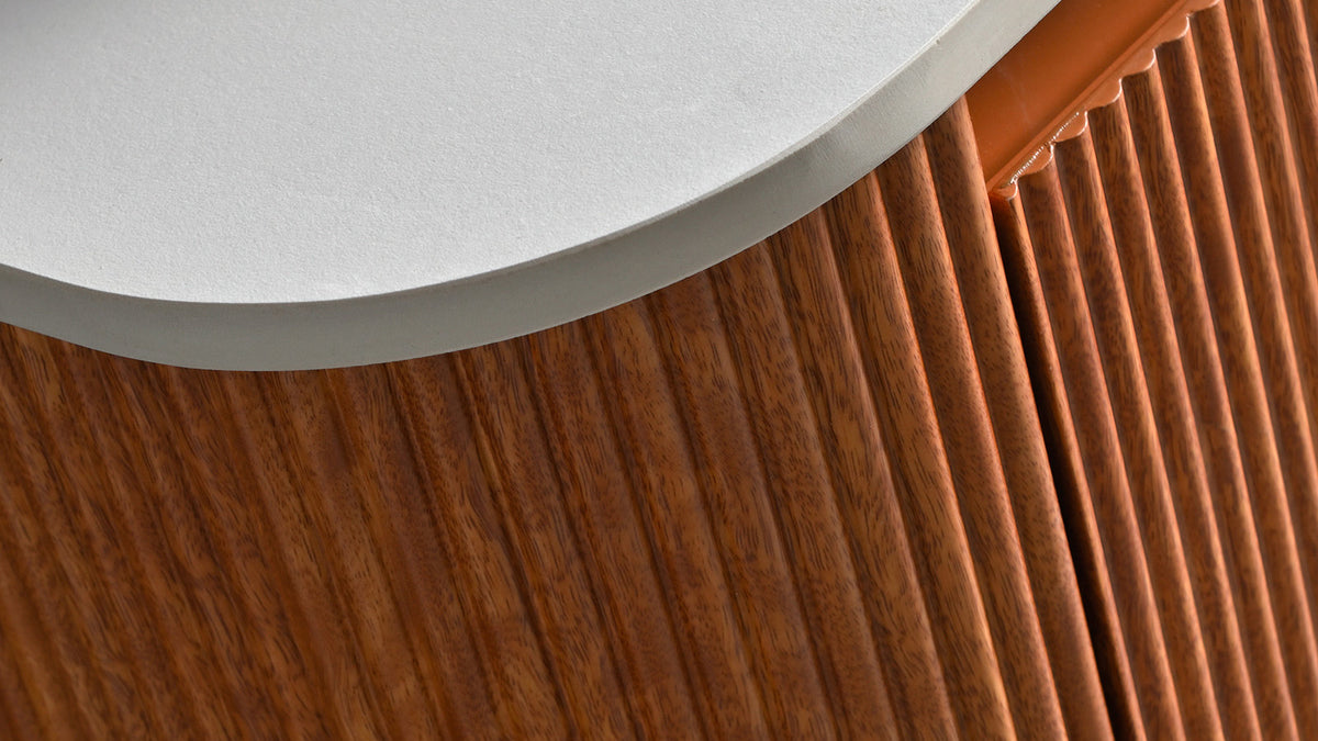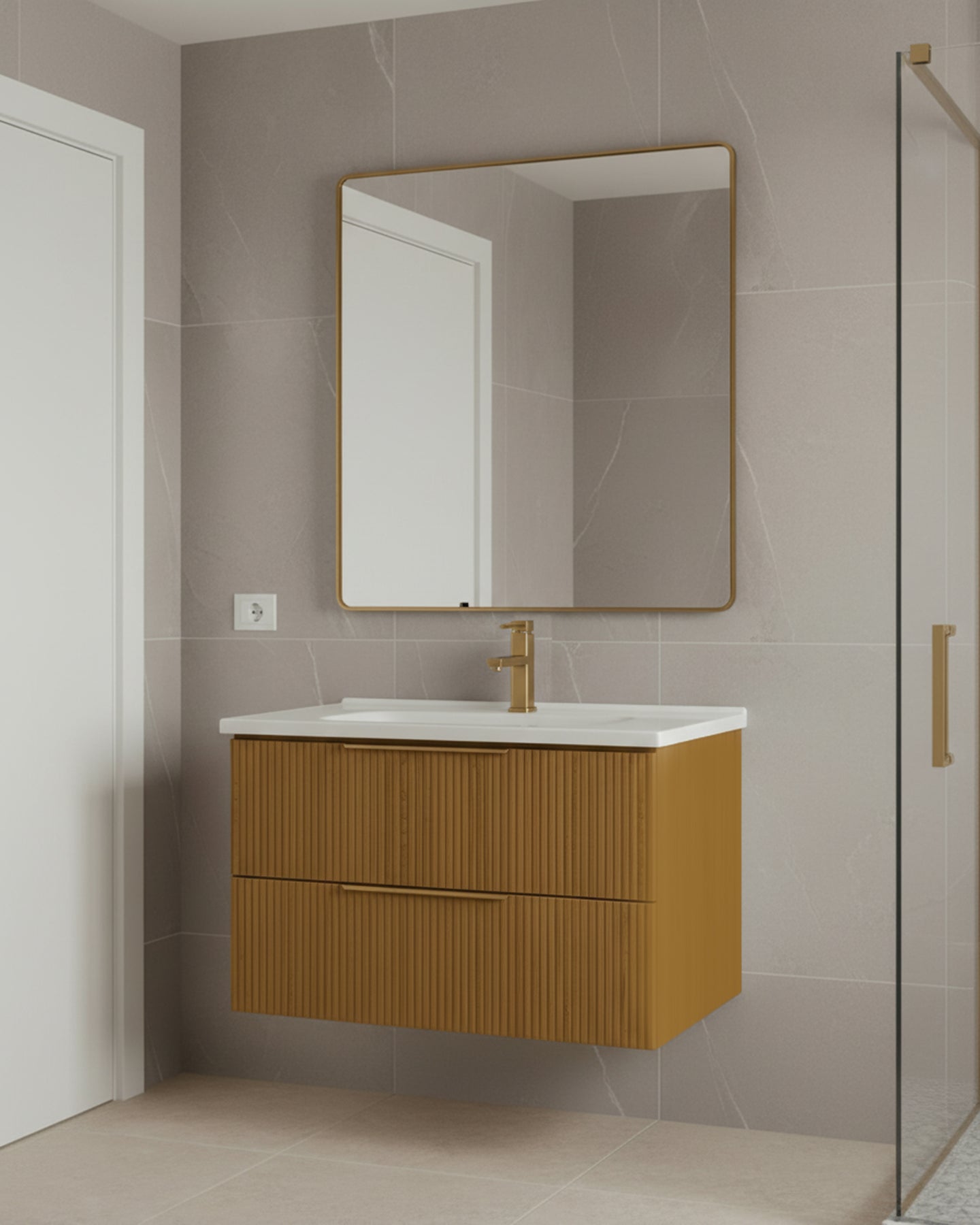Le meuble de salle de bain Erio incarne la rencontre entre design contemporain et travail de la matière. Ses reliefs verticaux cannelés apportent rythme et texture à la façade, créant un jeu de lumière subtil qui évolue selon l’angle de vue. Compact mais affirmé, Erio structure l’espace avec caractère tout en conservant une silhouette équilibrée.