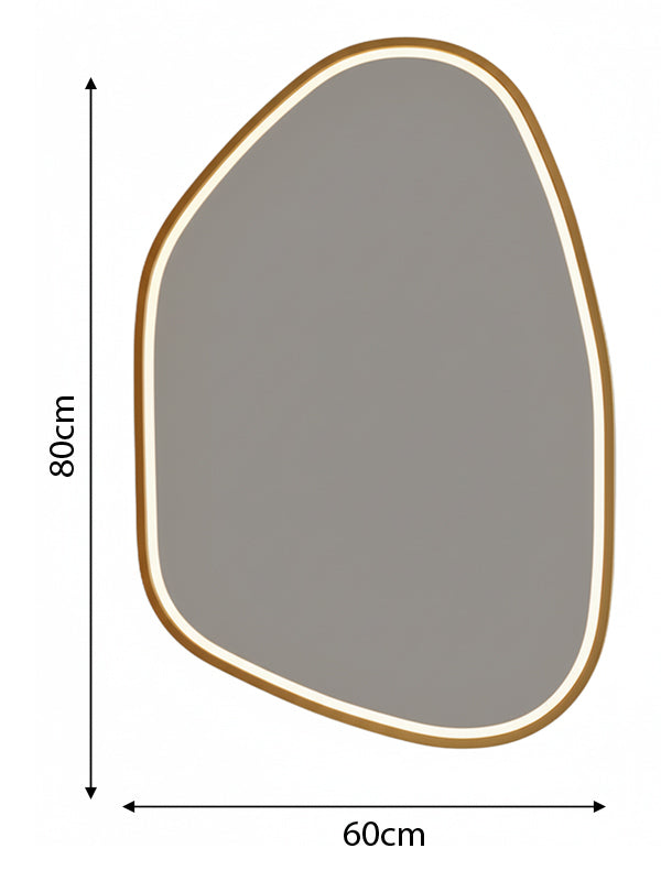 Miroir organique lumineux et désembuant 60×80 cm – bordure dorée, éclairage LED intégré