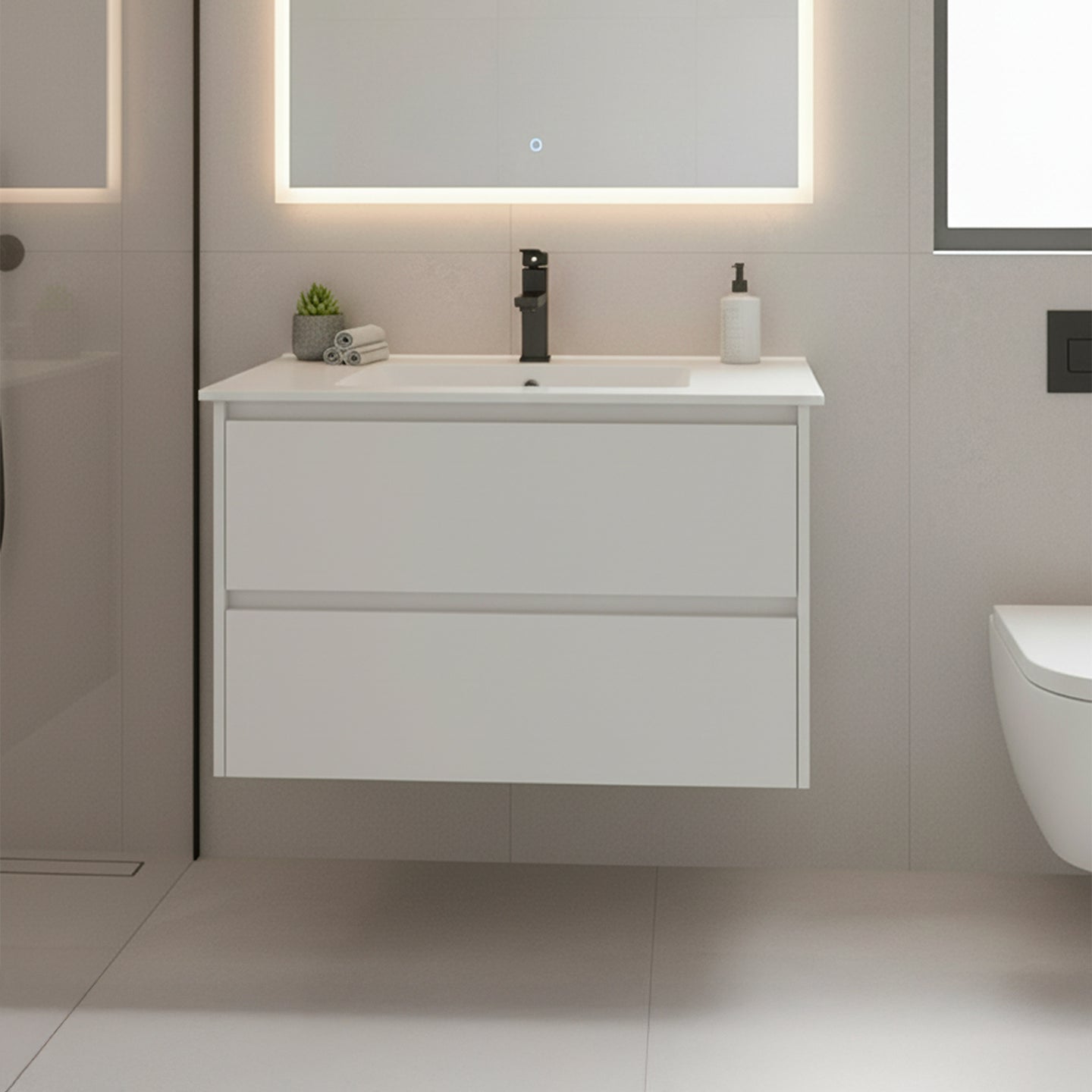 Avec ses deux tiroirs à fermeture douce, Oren offre un rangement fonctionnel et discret pour organiser l’essentiel. Son format compact permet une lecture visuelle légère, parfaitement adaptée aux petites salles de bain et aux espaces secondaires.