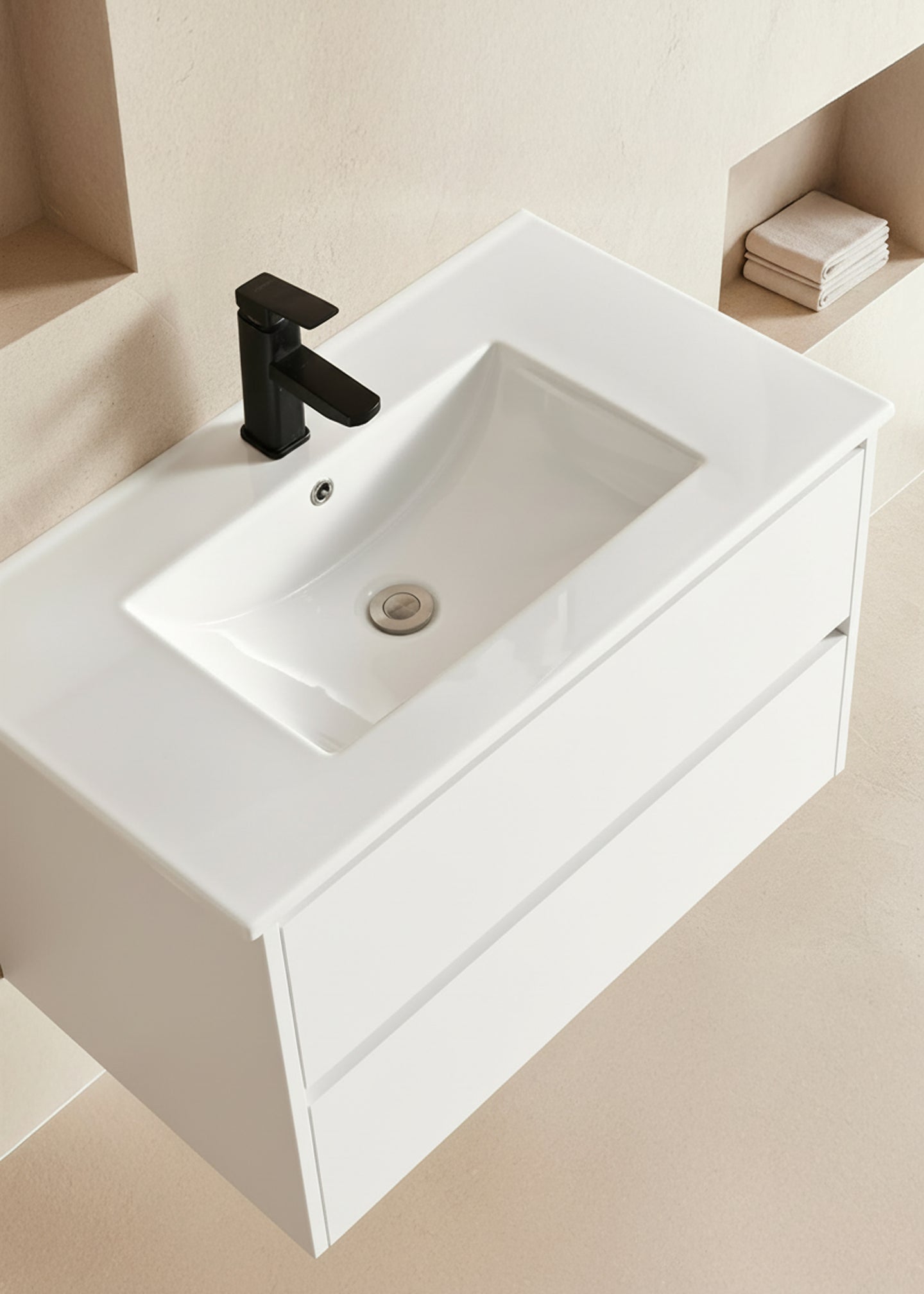 - Vasque intégrée en céramique, cuite à haute température