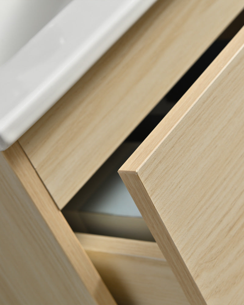 Le meuble de salle de bain Soren apporte une atmosphère douce et lumineuse à l’espace, portée par son bois clair et ses lignes rainurées au dessin précis. Sa teinte naturelle crée une sensation de calme et de clarté, idéale pour une salle de bain pensée pour le quotidien à deux ou en famille.